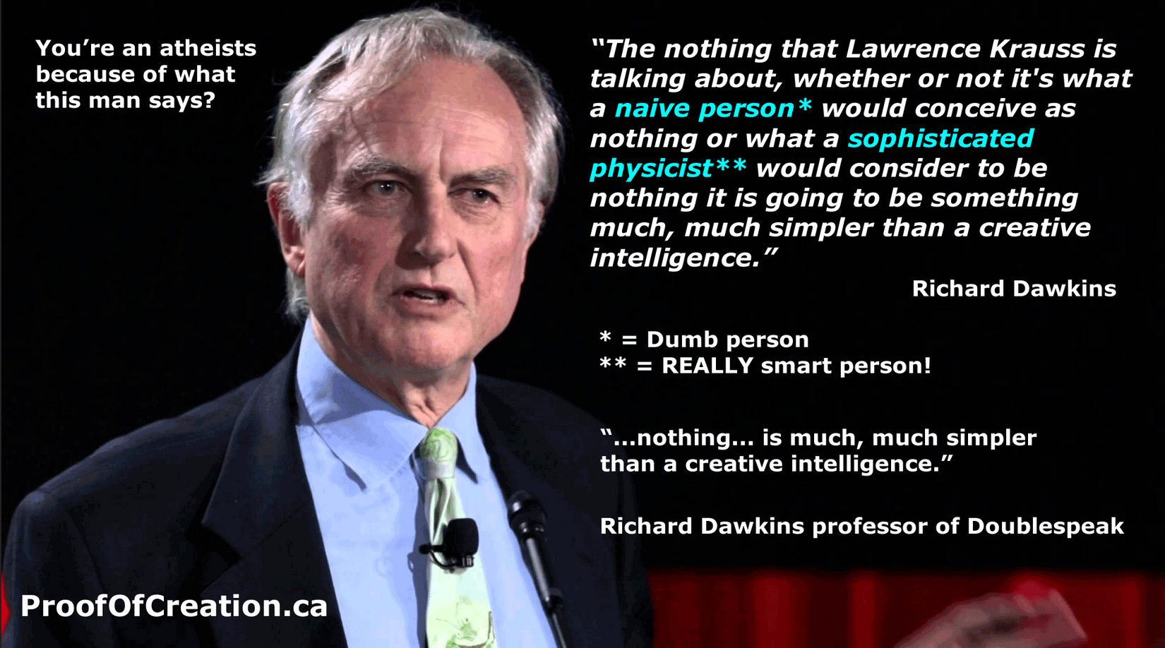 "The nothing that Lawrence Krauss is talking about whether or not it's what a naive person would conceive as nothing or what a sophisticated physicist would consider to be nothing it is going to be something much, much simpler than a creative intelligence." Yes, Richard Dawkins said that. So, in other words the dictionary definition of observation in science, and how sophisticated believers in evolution use two different terms for observation?